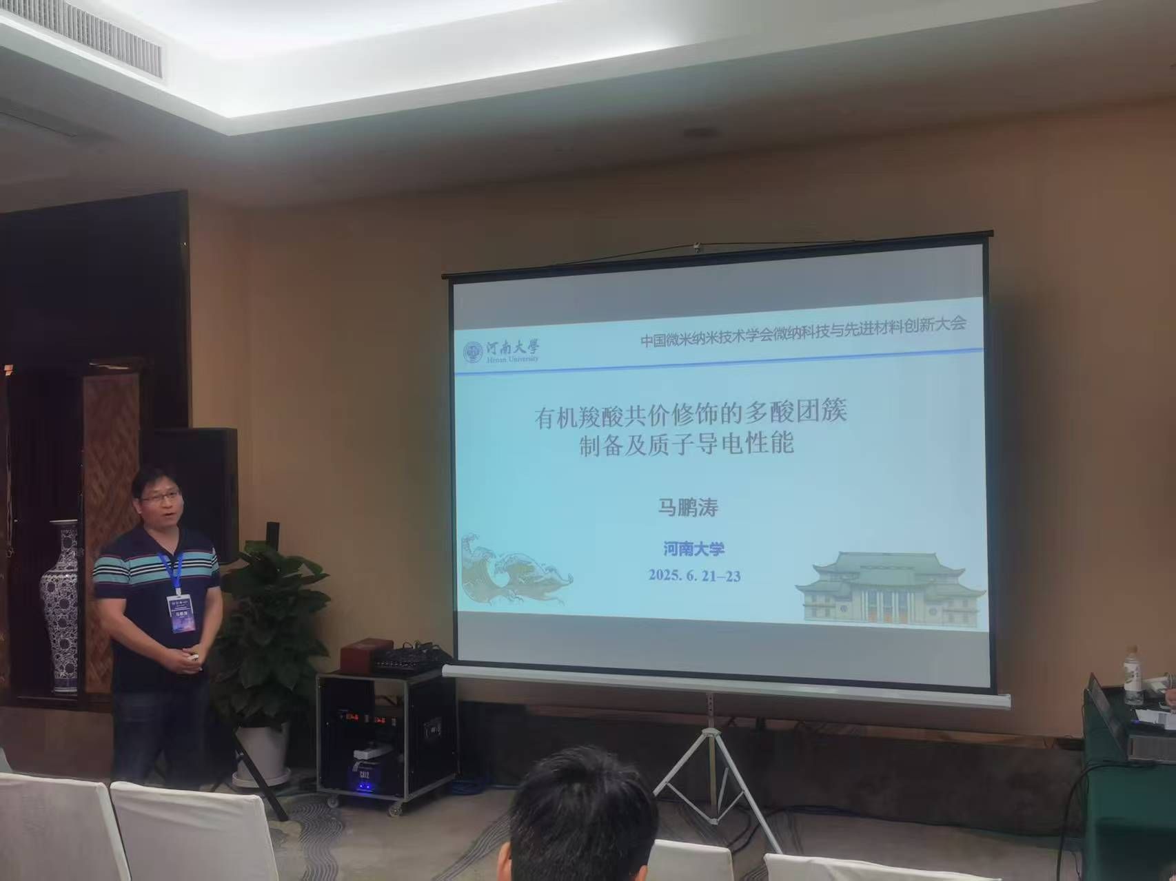 2025年6月21日,实验室马鹏涛老师参加中国微米纳米技术学会微纳科技与先进材料创新大会,并做邀请报告。